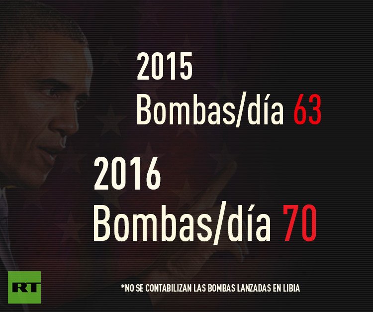 Otro estudio de ese mismo organismo indica que en 2015 la administración de Obama aprobó el lanzamiento de 23.144 bombas en estos mismos países, sin que se cuente con datos de los ataques sobre Libia de ese año. Tanto en 2015 como en 2016, la mayoría de las bombas fueron lanzadas sobre los territorios de Siria e Irak.