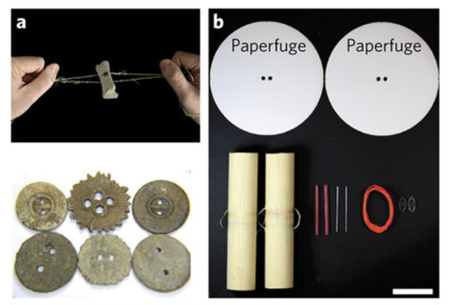 20 centavos de dólar, 125.000 revoluciones por minuto y sin utilizar electricidad: un equipo de expertos de la Universidad de Stanford han desarrollado una centrifugadora de sangre manual, elaborada solo con papel y cuerda, que es capaz de separar los diferentes elementos de la sangre en menos de dos minutos.