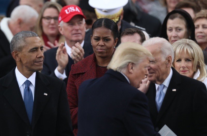 Así, los usuarios de Twitter que se oponen a la figura del nuevo presidente de EE.UU., se apresuraron a comentar que las expresiones faciales de Michelle Obama resumieron su disgusto y decepción con el nuevo mandatario y su discurso inaugural.
