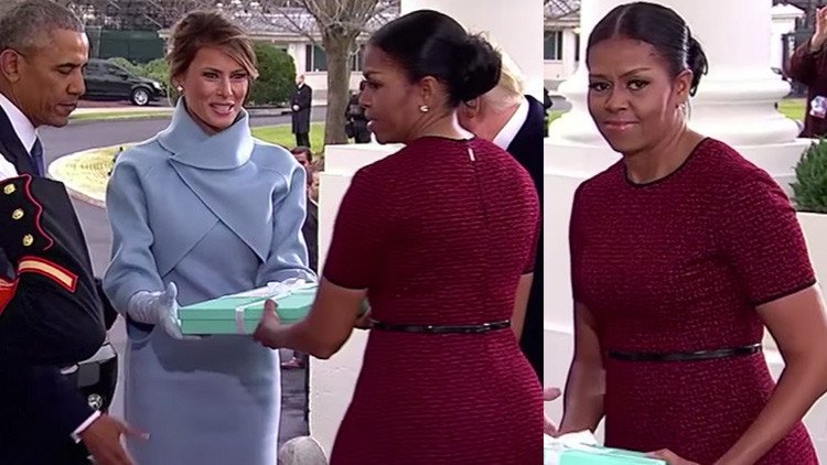 Los internautas tampoco han pasado por alto la situación incómoda con el regalo de la nueva primera dama, Melania Trump, y la cara de disgusto que hizo Michelle Obama al recibirlo.