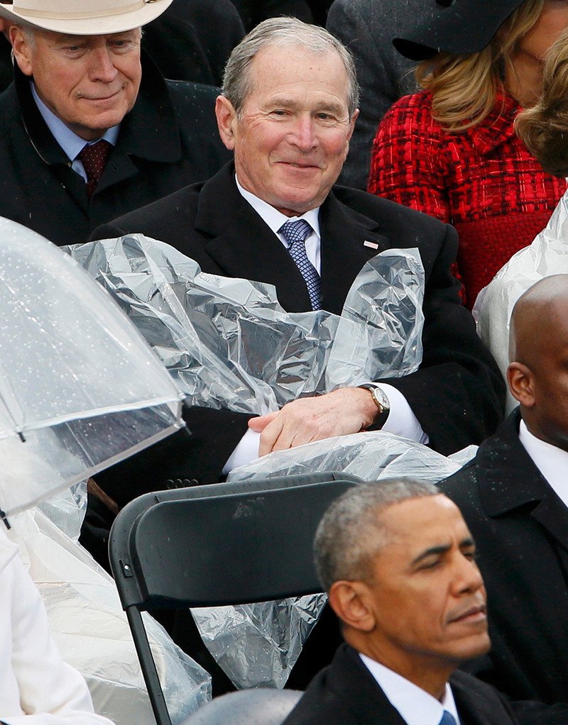 El expresidente de EE.UU., George W. Bush, ha protagonizado uno de los momentos más curiosos de la ceremonia de investidura de Donald Trump en el Capitolio, donde el evento transcurrió bajo una pequeña lluvia.