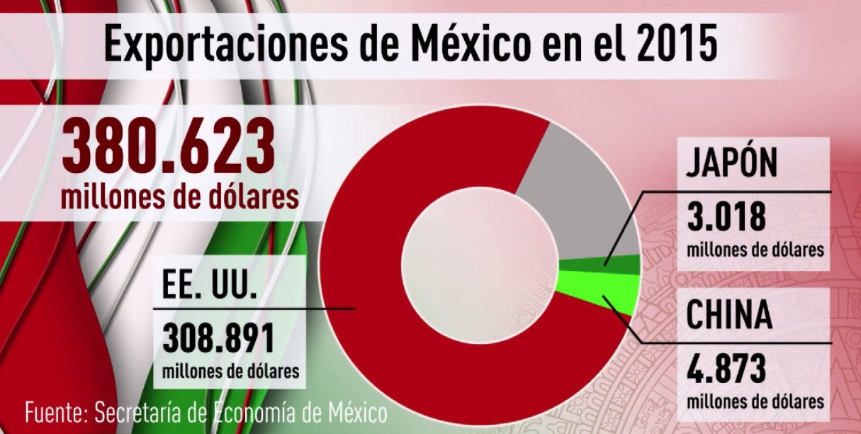 De acuerdo a cifras oficiales, en 2015 las exportaciones de México hacia los países asiáticos sumaron aproximadamente 3.000 y 5.000 millones de dólares respectivamente, mientras que las exportaciones con EE.UU. generan cerca de 310.000 millones de dólares.
