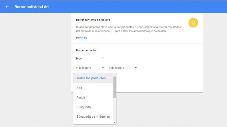-Paso tres: Para borrar, solo debe pulsar 'Borrar actividad del producto' y seleccione los datos que quiere eliminar.