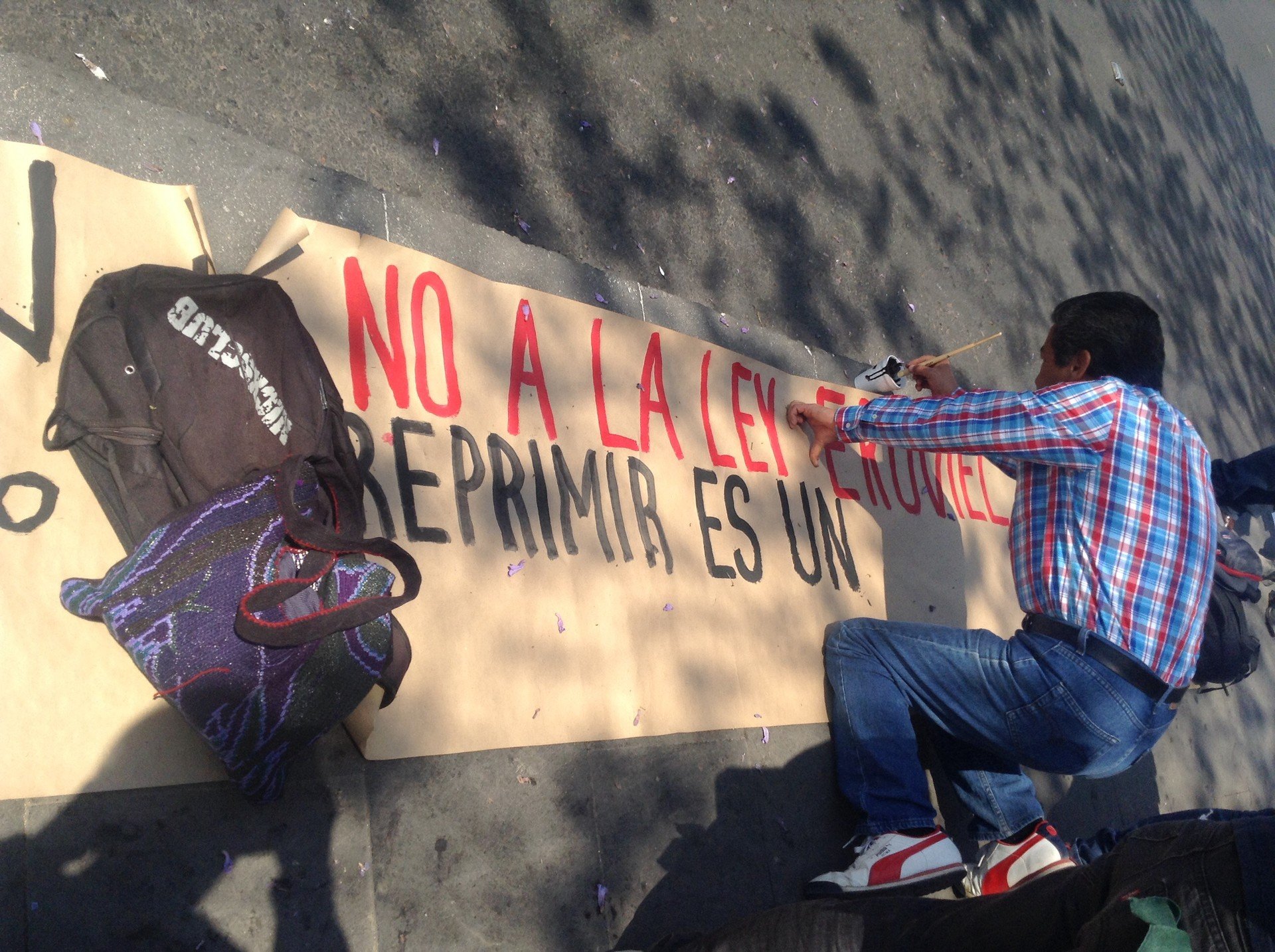 César Hernández Neri, maestro del Estado de México, denunció en una protesta frente a la SCJN que "permite el uso de armas legales del espionaje y de la ley fuga si los supuestos delincuentes escapan pero, sobre todo, permite la violación a a los derechos de los mexiquenses".