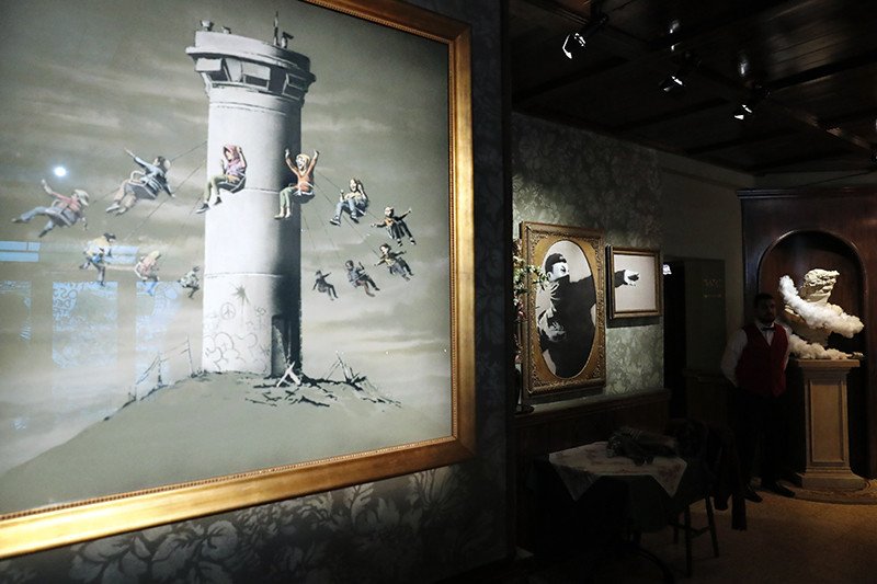 El artista callejero, director y activista político, cuya identidad no ha sido confirmada, creó algunas de sus obras en el muro que separa a los dos territorios. El hotel diseñado por Banksy se encuentra cerca del muro construido por Israel y tiene el nombre de 'Walled Off' ('Amurallado').