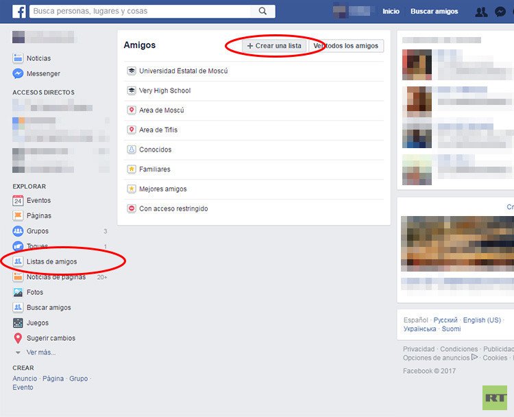 Además, se puede crear una lista personalizada o una lista inteligente de amigos. Para ello haga clic en 'Amigos', en el lado izquierdo de la sección de noticias, otro clic en el nombre de la lista que desee editar y después seleccione a sus amigos en la esquina superior izquierda.