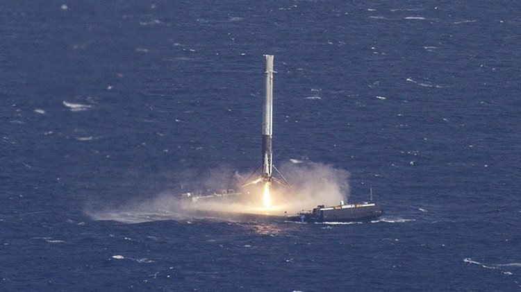 "La primera etapa del Falcon 9 ha aterrizado en [la plataforma] 'Of Course I Still Love You' en la primera repetición de vuelo de un cohete de clase orbital en el mundo", ha escrito SpaceX en su cuenta de Twitter. El cohete llevará a la órbita el satélite de telecomunicaciones SES-10.