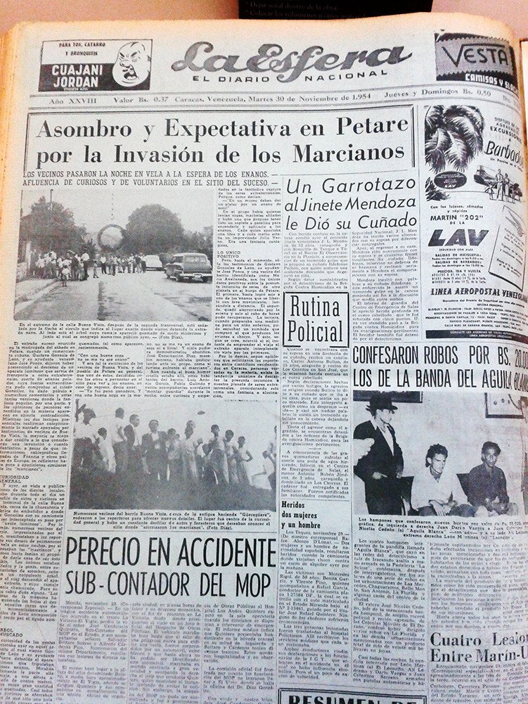 La prensa de la época tituló dos días después: "Asombro y expectativa en Petare por la invasión de los marcianos".