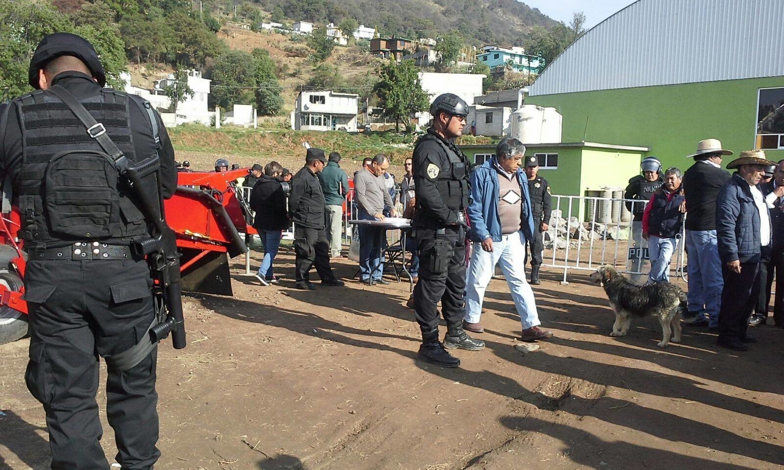 Este lunes 24 de abril, decenas de policías del gobierno del estado de México arribaron a la población para vigilar una asamblea en la que comuneros registrados elegirían a su próximo representante. Llegaron en la mañana y estacionaron sus vehículos cerca del jardín de niños de la población, lo que, denuncian los comuneros, causó pánico en los infantes. La Policía revisó a los comuneros que estaban en la asamblea, y a algunos se les impidió el paso.