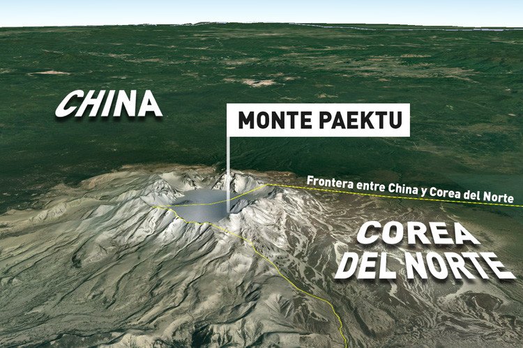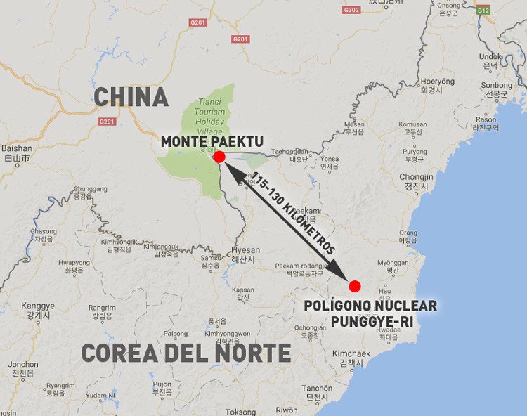 - La montaña volcánica se encuentra a menos de 130 kilómetros de distancia en línea recta del sitio de pruebas nucleares Punggye-ri de Corea del Norte.