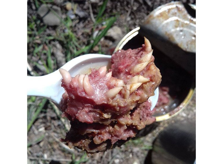Soldados ucranianos han descubierto en su comida un objeto desconocido cuyo aspecto se asemeja a dientes de alguna especie. Serguéi Turovich, quien participó en acciones militares en el sudeste de Ucrania, ha publicado un documento gráfico en su perfil en su cuenta de Facebook que certifica ese extraño 'hallazgo' en una lata de conservas.