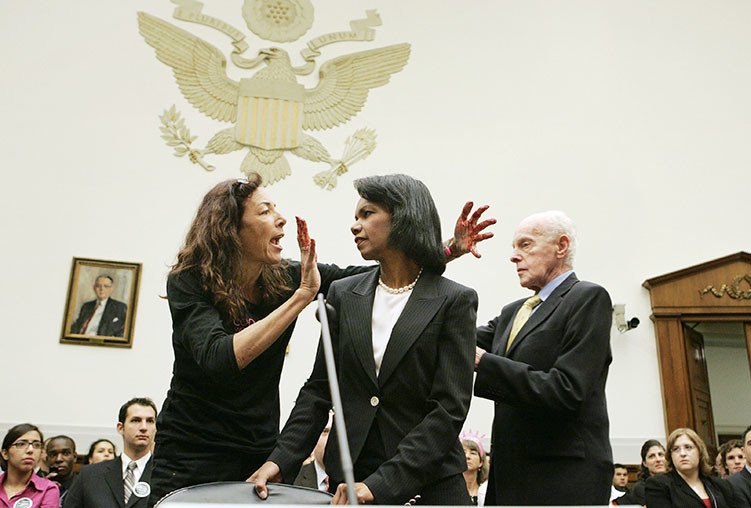 En 2007, Desiree Fairooz fue detenida durante una sesión del Congreso en la que se encontraba la exsecretaria de Estado Condoleezza Rice, tras haberle gritado "criminal de guerra" a la política.