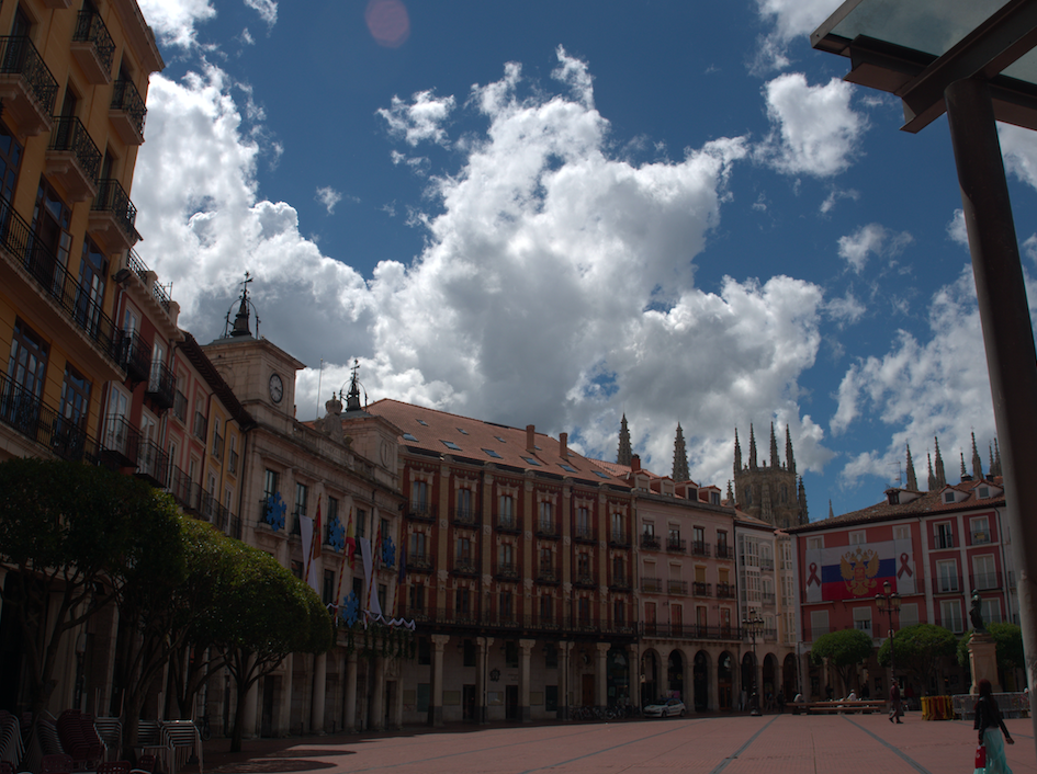 Una vez más, la bandera de Rusia ha sido colgada en un edificio de la Plaza Mayor de Burgos, despertando la curiosidad de los ciudadanos y turistas. No es ninguna novedad que en Rusia se celebra el Día de la Victoria sobre el nazismo con un gran desfile militar por las calles de Moscú, pero otra cosa es que en pleno centro histórico de una ciudad española aparezca una enorme bandera rusa con los crespones de San Jorge.