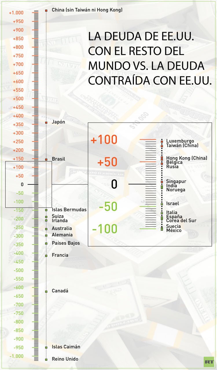 Sin embargo, el propio país norteamericano también debe mucho al resto del mundo: más de 6 billones de dólares. Y es aún mayor el endeudamiento interno, acercándose la cifra total de la deuda federal a los 20 billones. La dinámica de los últimos ocho años ha sido impresionante en ese último aspecto.