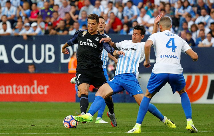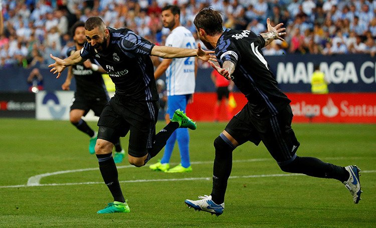 Los blancos estaban obligados como mínimo a empatar en La Rosaleda para llevarse el título, pero el partido en Málaga se desarrolló sin sobresaltos. Apenas habían transcurrido dos minutos de partido cuando Cristiano Ronaldo atajó de raíz cualquier atisbo de suspense marcando el primer gol. El luso recibió un pase de Isco en el área y batió a placer al portero Kameni.