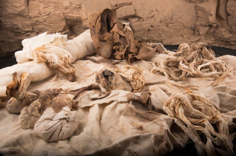 Sin embargo, para los arqueólogos, las piezas más impresionantes de esta colección son las jarras de arcillas nilóticas y margas, algunas con inscripciones de alfarero e hierático; varias vendas de seis metros de largo; un sudariousado para cubrir el cuerpo del difunto durante el proceso de embalsamiento; un pañuelo con flecos de una longitud de 10 metros; bolsas de natrón que fueron introducidas en las cavidades del cuerpo del difuntos; piezas de tela que también sirvieron como paquetes internos; y una serie de vendas finas que se utilizaban para dedos, manos y pies.
