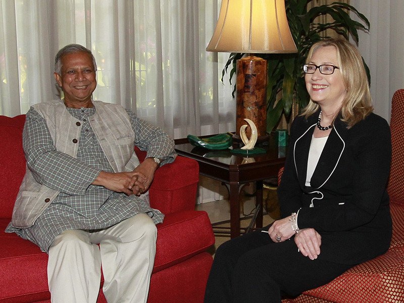 - En concreto, se cree que la entonces secretaria de Estado envió a los principales diplomáticos estadounidenses a presionar a la primera ministra de Bangladés, Sheik Hasina, y a su hijo, Sajeeb Wazed, para que cerraran las pesquisas contra Yunus.
