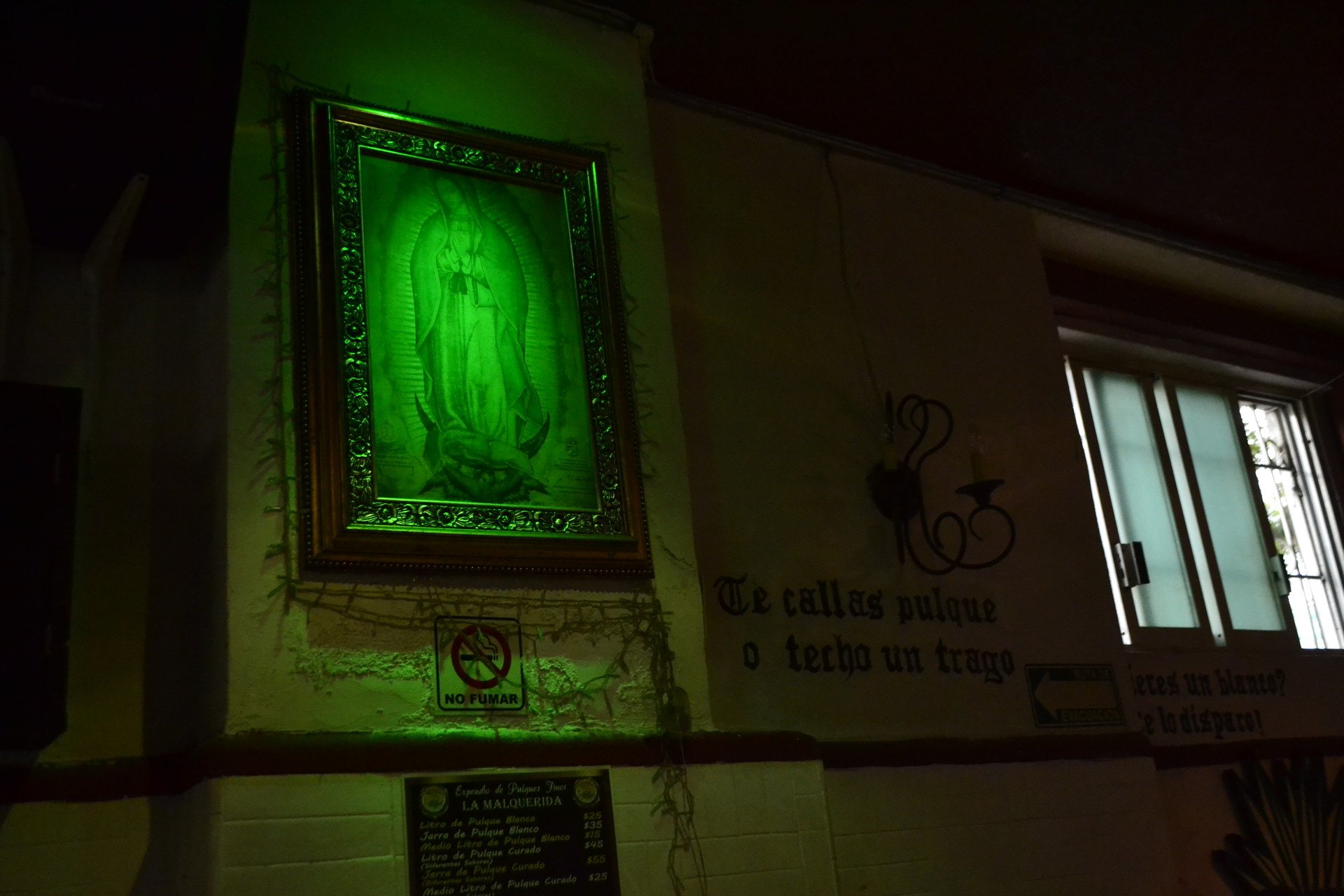 "Si tienen algún problema de renta, pídanle un deseo a ella", dice otra artista visual al fondo de la pulquería.
