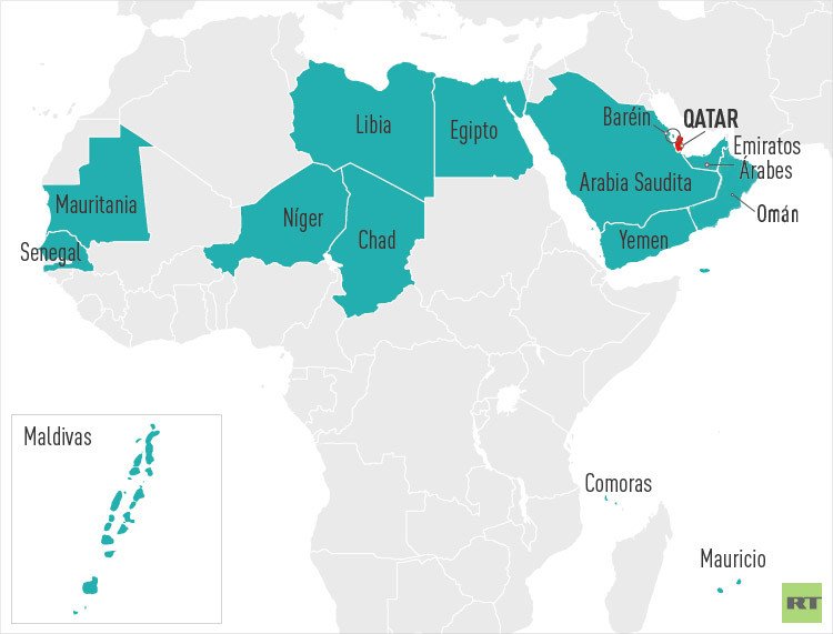 Posteriormente, Yemen, Libia, Maldivas, Mauricio, Mauritania y Comoras se unieron a esta medida, mientras que Yibuti, Níger, Chad y Senegal redujeron su representación diplomática en territorio catarí.