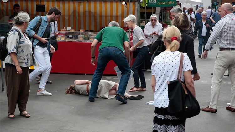 Los médicos ayudaron a la candidata y la llevaron al hospital, mientras que el hombre que agredió a la política escapó corriendo a la estación del metro más cercana.