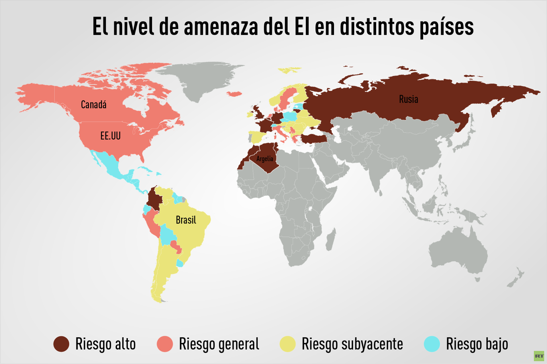 Niveles de amenaza del Estado Islámico según datos del Ministerio de Relaciones Exteriores británico de 2016.