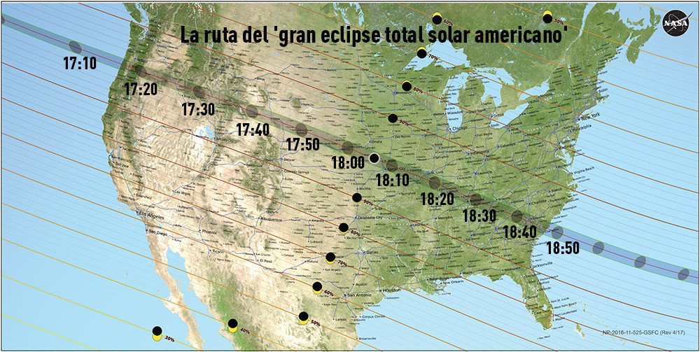 Este raro evento, que ocultará por completo el Sol, se desplazará por una franja de 112 kilómetros de ancho que atravesará EE.UU desde la costa oeste hasta la este, desde el estado de Oregón y hasta Carolina del Sur.