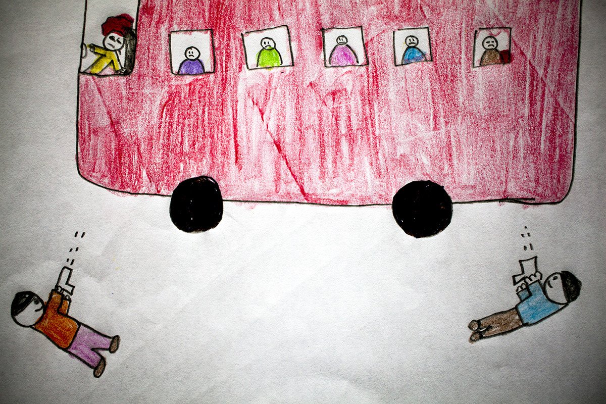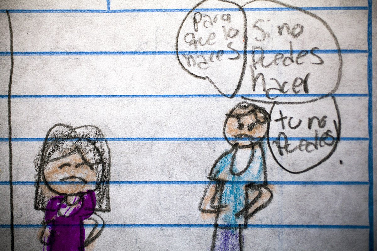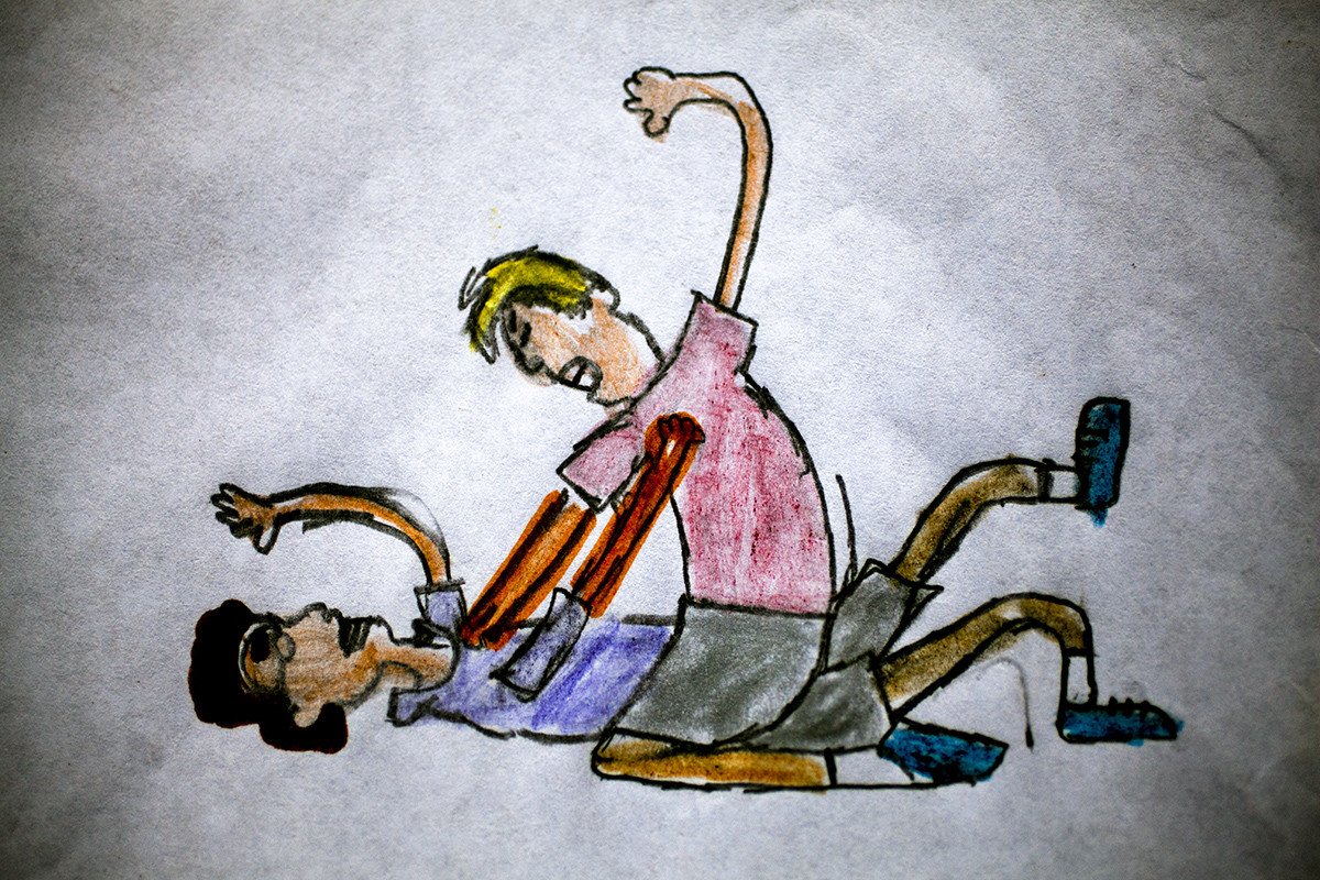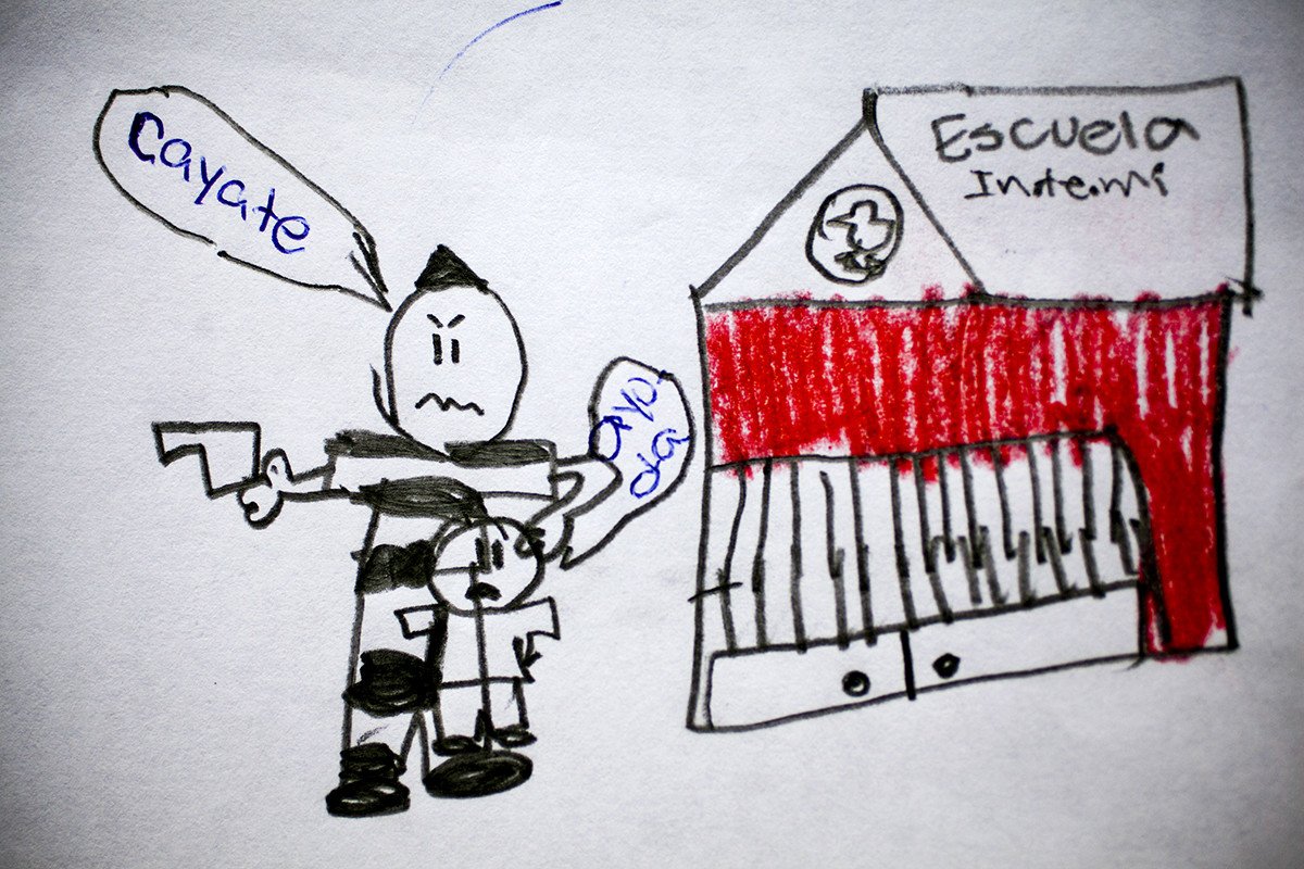Todos estos dibujos traslucen una realidad muy difícil de digerir: la violencia está presente en todos los ámbitos de la vida de estos menores. La violencia intrafamiliar es muy frecuente. Doce de ellos contaron episodios de violencia dentro de su propia casa, y uno de ellos llegó a confesar que teme que un día su padre asesine a su madre. Hablamos de un entorno especialmente duro: en los últimos seis años se han registrado nada menos que 42 asesinatos de menores a manos de sus propios padres.
