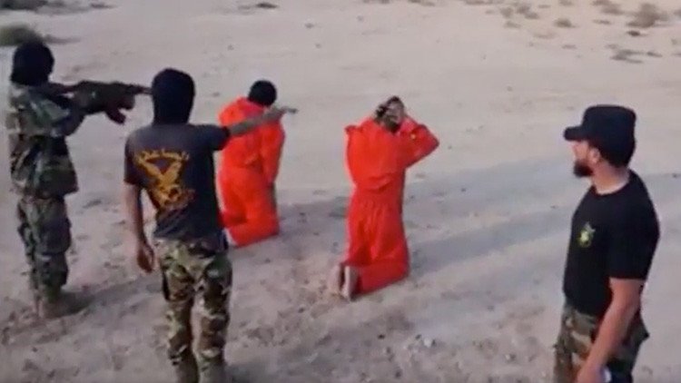 En el video, se aprecia un grupo de cautivos vestidos con monos de color naranja de rodillas formando cuatro filas con los ojos vendados. Al más puro estilo Estado Islámico, cinco ejecutores se acercan a los prisioneros y acaban con su vida disparándoles en la cabeza.