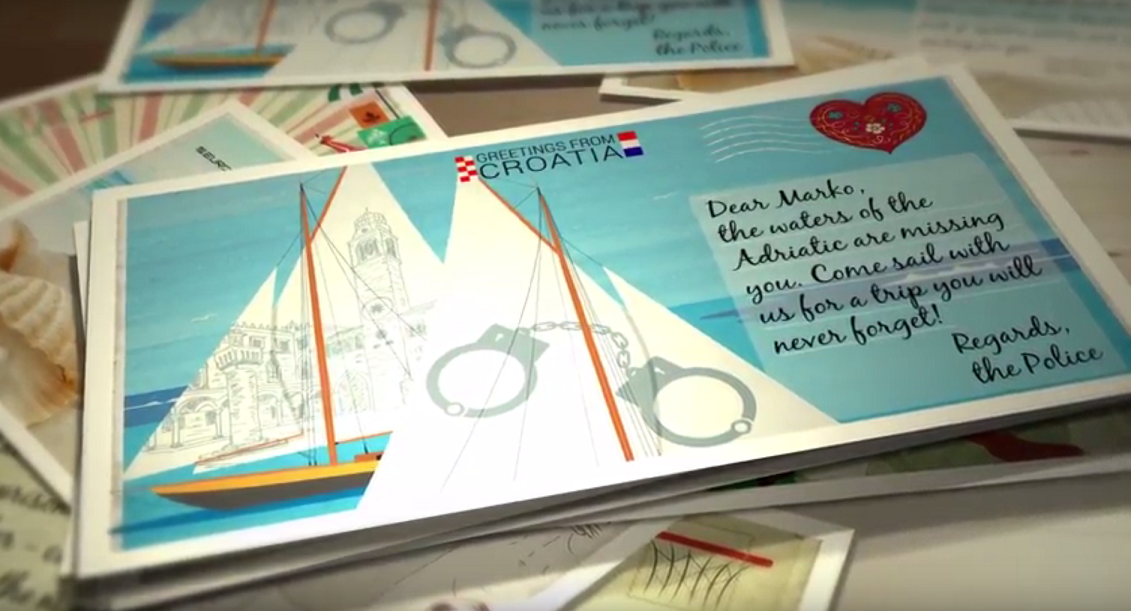 "Querido Marko, las aguas del Adriático [mar] te echan de menos. Ven a navegar con nosotros en un viaje que nunca olvidarás. Saludos, la Policía", reza una de las postales dirigida al croata, Marko Nikolic, buscado por homicidio agravado.