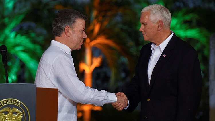 Durante la visita de Pence a Cartagena de Indias (Colombia), ambos políticos han ofrecido una rueda de prensa en la que Santos ha declarado: "América es un continente de paz, mantengámoslo así".