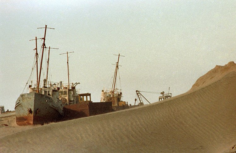 Moynak es una ciudad uzbeka que ahora cuenta con 18 mil habitantes, pero antes estaba muy densamente poblada por su desarrollada industria pesquera. En los 1960, la población de este otrora puerto empezó a disminuir debido a la progresiva desaparición del mar de Aral.