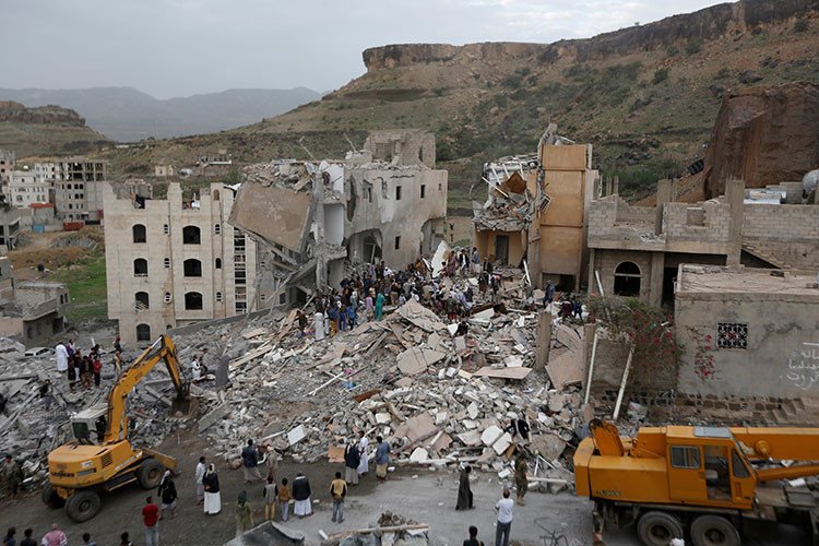 Otro bombardeo de la coalición, llevado a cabo este miércoles, alcanzó un hotel cerca de la capital de Yemen, matando a decenas de personas, entre rebeldes y civiles. El hotel de dos pisos en Arhab, a unos 35 kilómetros al norte de Saná, quedó completamente destruido en el ataque.