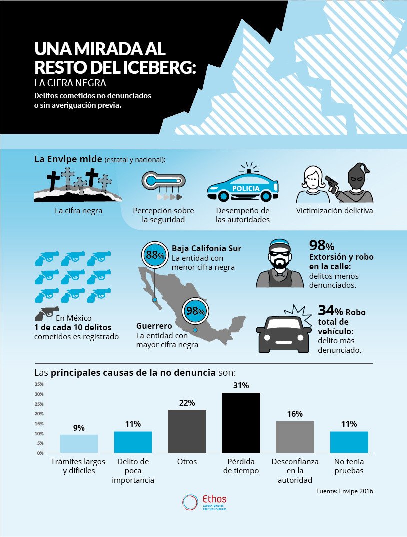Un estudio de la consultoría independiente Ethos Laboratorio de Políticas Públicas señala que la tasa de homicidios en México es de 17,5 por cada 100.000 habitantes, lo que coloca al país como uno de los más violentos del mundo. Además, lo ubica como el más impune de América y de todos los países que integran la Organización para la Cooperación y el Desarrollo Económicos (OCDE).