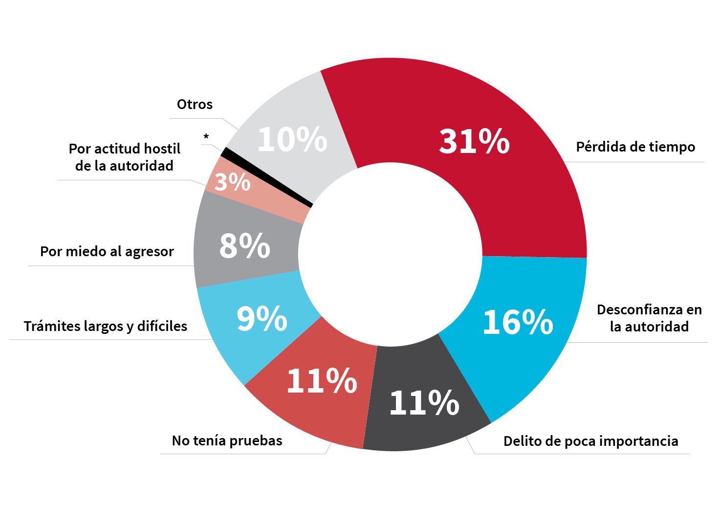 Ese informe, 'Descifrando el gasto público en seguridad', señala que en el país latinoamericano el 95 % de los delitos denunciados no son sancionados. Peor aún, la cifra real de algunos tipos de delitos que nunca son juzgados alcanza el 99 %, pues muchos de los crímenes ni siquiera se denuncian por la falta de confianza que los ciudadanos tienen en sus instituciones. Sí, la justicia sólo alcanza al 1 % de los perpetradores de las actividades delincuenciales.