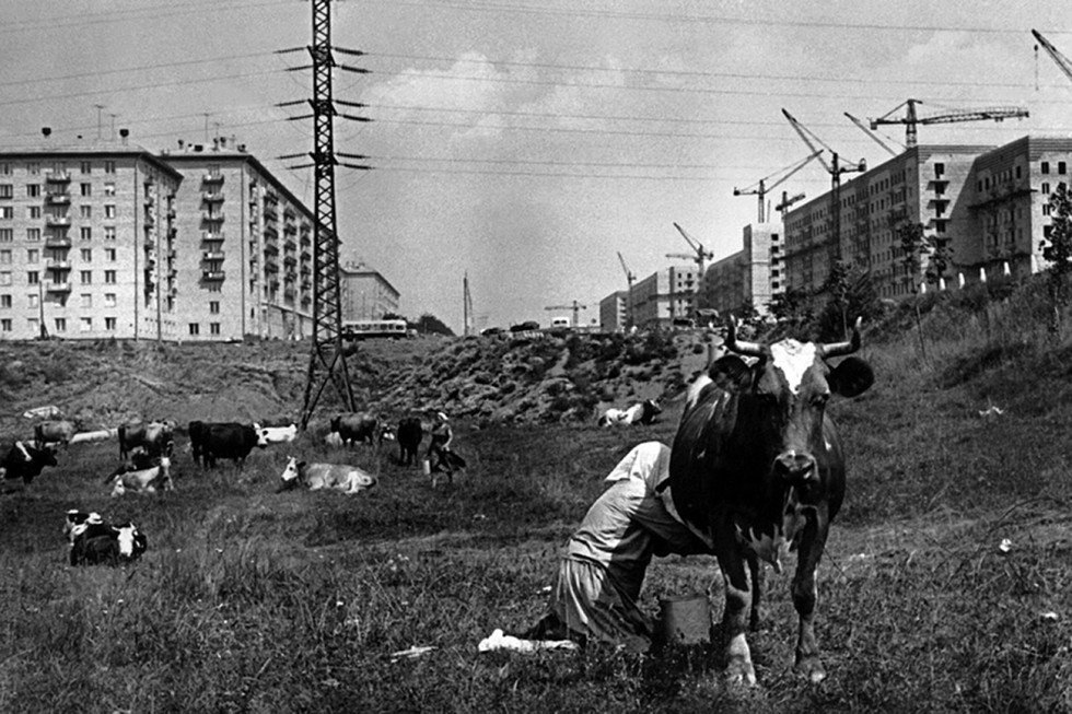 Los famosos edificios de apartamentos 'jrushchiovki', que ahora están en proceso de demolición, se empezaron a construir a finales de los años 50 en el entonces pueblo de Cheriómushki, en la región de Moscú, que hoy se encuentra dentro del perímetro de la ciudad. Sin embargo, existe evidencia fotográfica de cómo era la aldea en 1954.