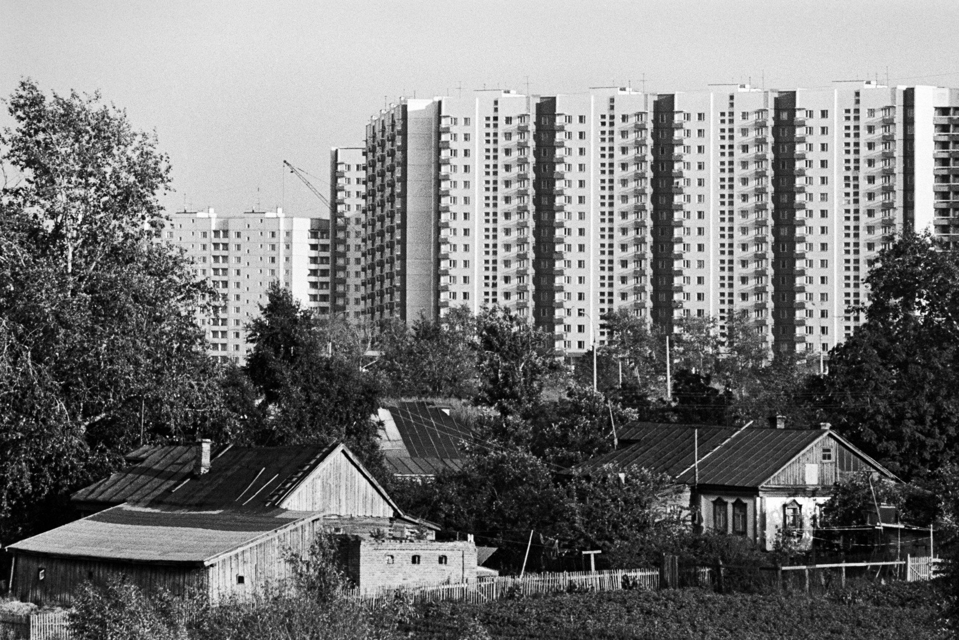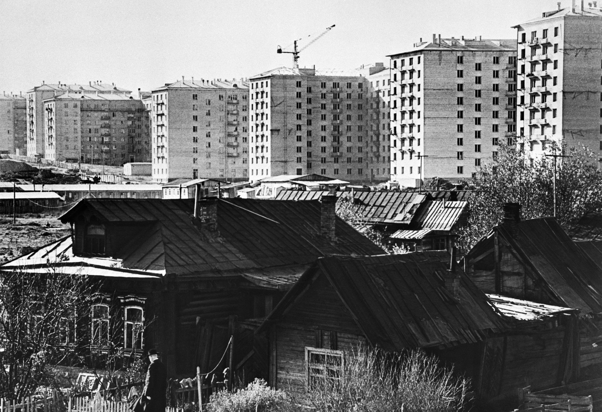 Muchos distritos de Moscú que ahora, por lo general, se consideran como casi céntricos, estuvieron formados por casas de madera hasta los años 60 y parecían entornos bastante rurales. Por ejemplo, esta es la pinta que tenía la zona en Cherkízovo, en el este de Moscú.