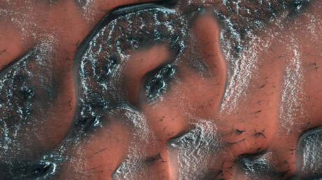 La NASA ha publicado una impresionante imagen que muestra pintorescas formaciones de dunas con nieve y hielo en la superficie de Marte.