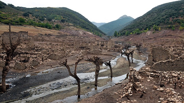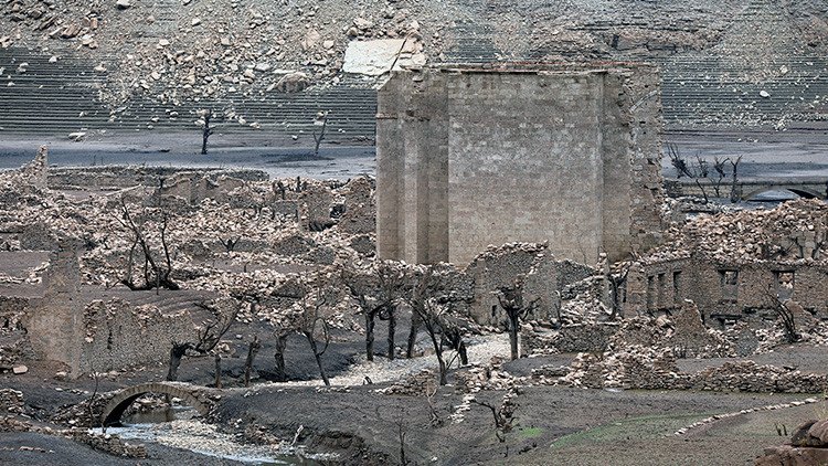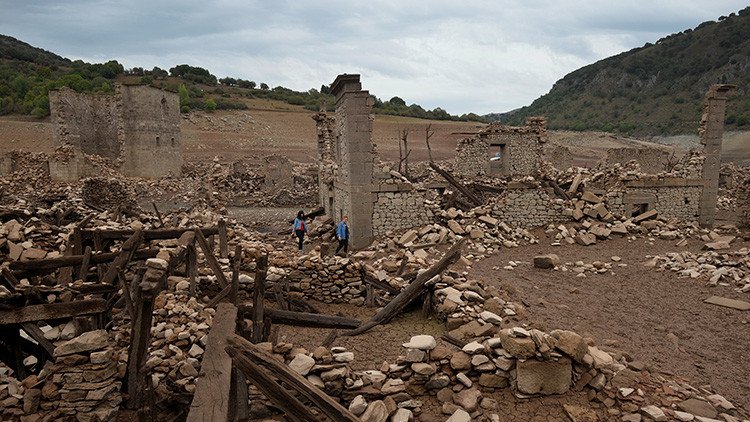 Las ruinas de la ciudad española de Mansilla de la Sierra, en la provincia de Rioja, ocultas desde hace casi 60 años bajo un embalse, aparecieron este mes a la vista como consecuencia de una prolongada sequía.