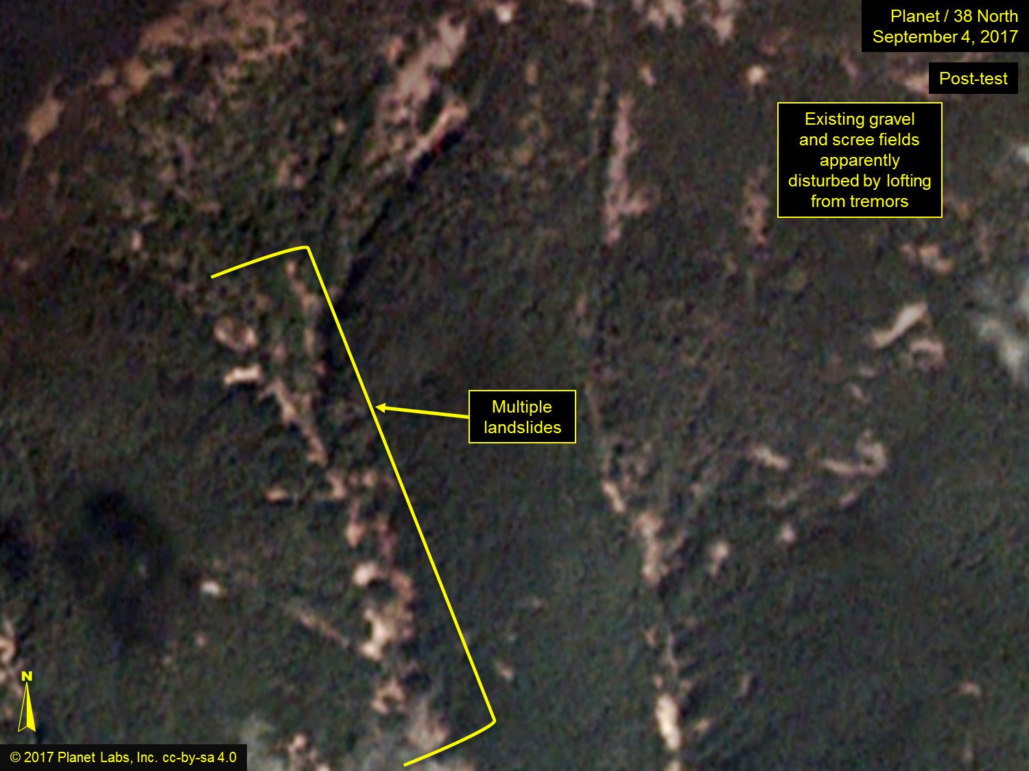 El expertos del portal compararon imágenes satelitales comerciales tomadas el 1 y el 4 de septiembre, un día después de que Pionyang efectuó su sexta y más potente prueba nuclear, que según estima el Servicio Geológico de EE.UU. (USGS) causó un terremoto de magnitud 6,3.