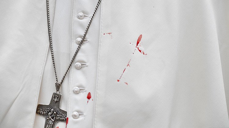 Tras el golpe un par de gotas de sangre mancharon su vestimenta, pero a pesar de ello, no detuvo su recorrido y continuó saludando a los congregados.