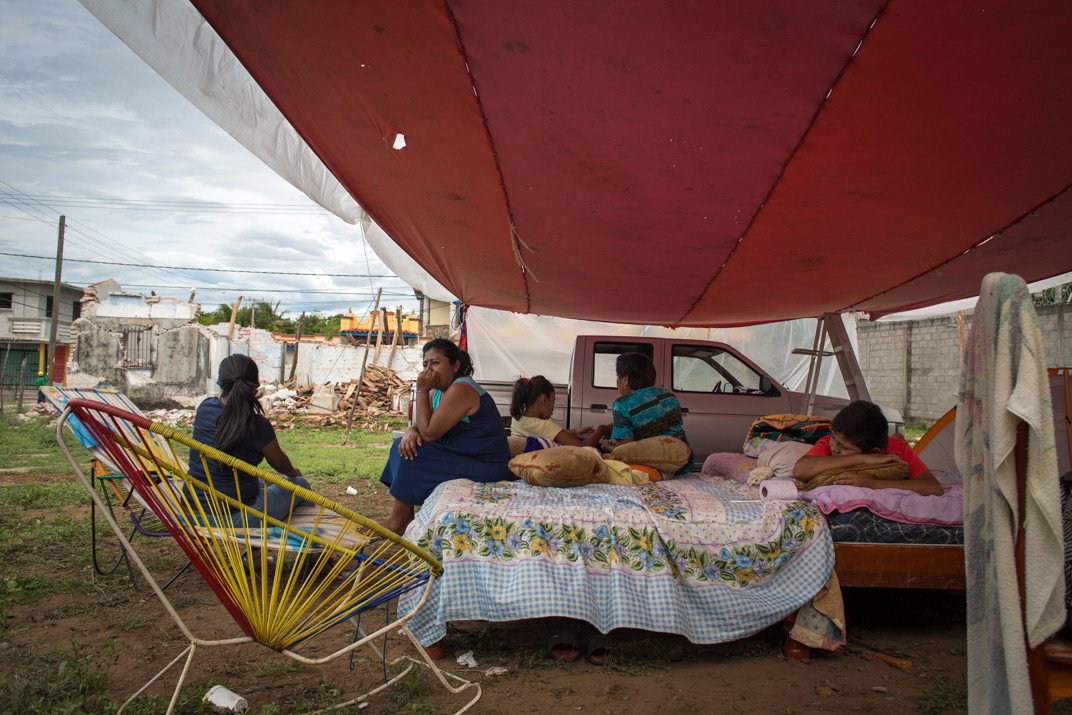 Humberto, pescador, perdió su casa precisamente porque se hundió entre el agua de la laguna y la tierra abierta por el sismo. Él junto con sus tres niños, su hermano y su esposa esperan la llegada de alguien que les dé un poco de consuelo y alguna certeza de que no todo está perdido. Tras el terremoto, no ha podido volver a pescar, sin embargo, gracias a una brigada de habitantes del municipio de Salina Cruz que llegaron este lunes a repartir comida, tuvo algo que comer y que ofrecerle a su familia.