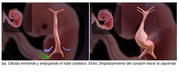 Así, según han podido comprobar en embriones de pollo, pez cebra y ratón, durante el desarrollo cardiaco en el embrión, dos grupos de células se incorporan desde la derecha y la izquierda. Sin embargo, las de la derecha son mucho más numerosas, por lo empujan al corazón y acaban desplazándolo a la izquierda.