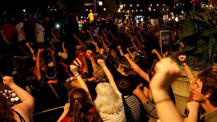 Cientos de manifestantes salieron a las calles de la ciudad San Luis en rechazo a la decisión de un juez del estado de Missouri que absolvió a un policía blanco acusado de asesinar a tiros a un afroamericano en 2011, informa Reuters.