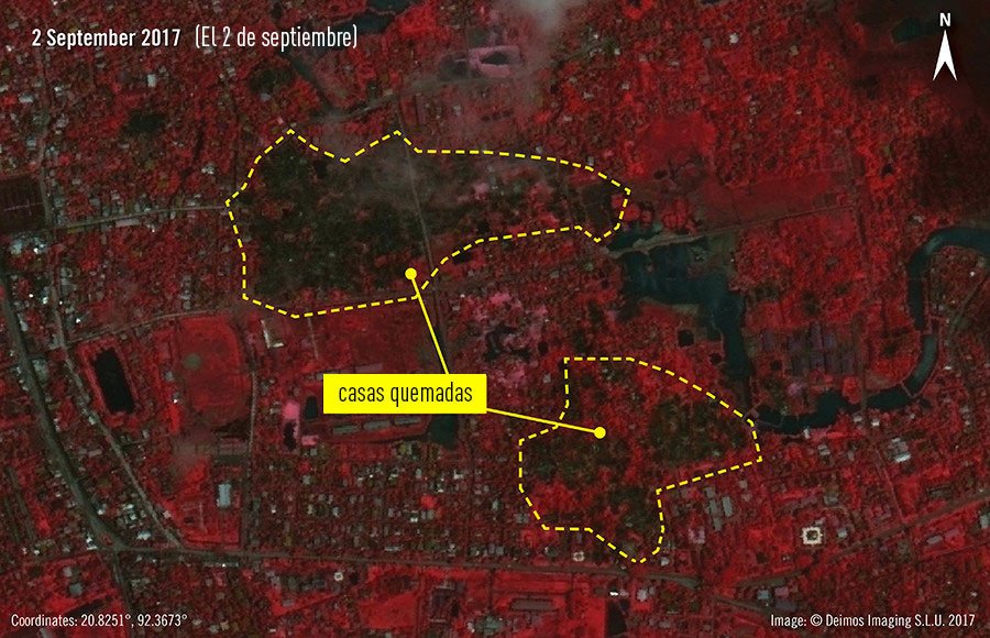 La ONG de derechos humanos Amnistía Internacional ha proporcionado nuevas pruebas que indicarían la ejecución de una campaña de tierra quemada a gran escala en Rakáin, el principal estado donde habitan de manera compacta los rohinyás, una minoría étnica musulmana de Birmania.