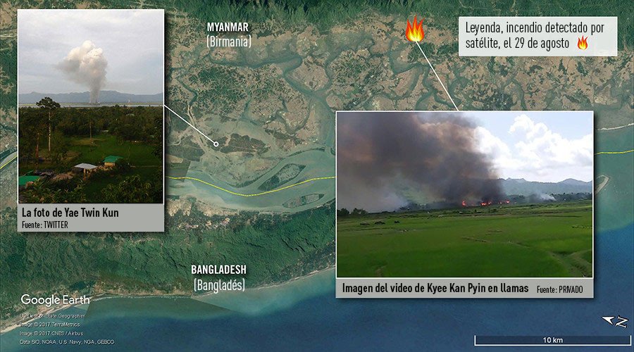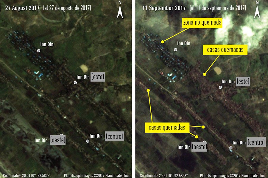 "Las pruebas son irrefutables: las fuerzas de seguridad birmanas provocan incendios en el estado septentrional de Rakáin en el marco de una campaña enfocada a expulsar a los rohinyás de Birmania. No se equivoquen: es una limpieza étnica", afirmó Tirana Hassan, de Amnistía Internacional.