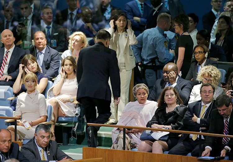 El embajador de Corea del Norte se retiró de la sala de la Asamblea General de las Naciones Unidas antes de que el presidente de Estados Unidos iniciara su alocusión.