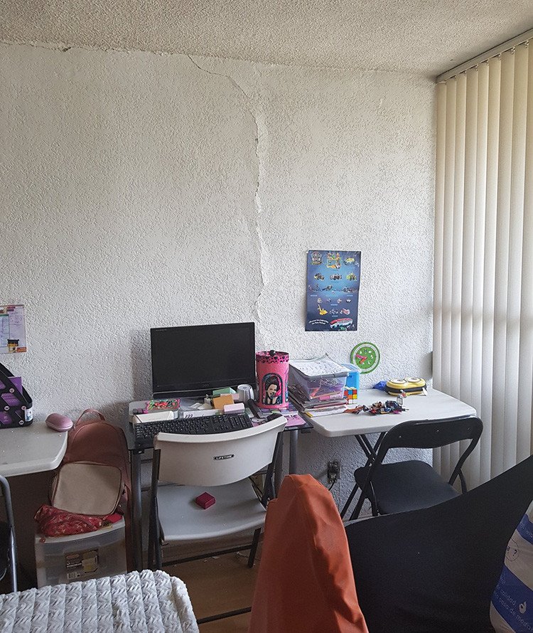 María Eugenia vive en la colonia Del Valle de la Ciudad de México, una de las áreas más afectadas por el sismo. Durante la noche, tuvo que ser evacuada de su vivienda por elementos de Protección Civil debido a que su hogar presentaba graves fallas en la estructura.