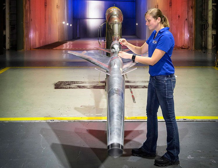 Jacobs Technology Inc., proveedora de tecnologías y servicios aeronáuticos, finalizó este jueves la instalación del diseño preliminar QueSST en el túnel de viento subsónico del Centro de Investigación Langley de la NASA, labor a cargo de la ingeniera de pruebas Samantha O'Flaherty.