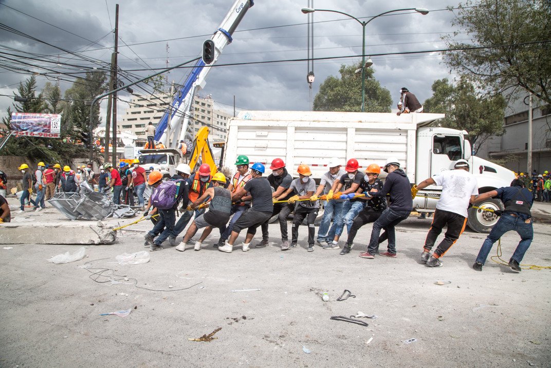 Fue la gente la que nos dio casco, guantes, chalecos y comida; la que nos ofreció revisión médica, un lugar para descansar entre tanto ajetreo y turnos largos de remoción de escombros. Fue la gente la que consiguió botes para trasladar las piedras y el cascajo, fue la gente la que se coordinó con los rescatistas especializados —mexicanos e internacionales— y consiguió herramientas, lámparas y todo lo necesario para salvar a la mayor cantidad de personas. Es la gente de a pie la que ha impedido el uso de maquinaria pesada y la que ha resistido hasta agotar las últimas posibilidades para encontrar gente con vida. Albañiles, enfermeras, barrenderos, amas de casa, estudiantes de todos los niveles educativos, colectivos, taxistas, todo tipo de trabajadores han hecho que nuevas enseñanzas sean posibles.