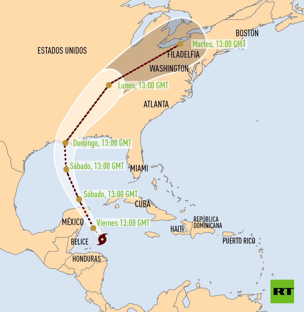 - El huracán Nate se dirige hacia el centro del golfo de México, y se espera que más tarde se fortalezca y toque tierra en la costa de EE.UU.